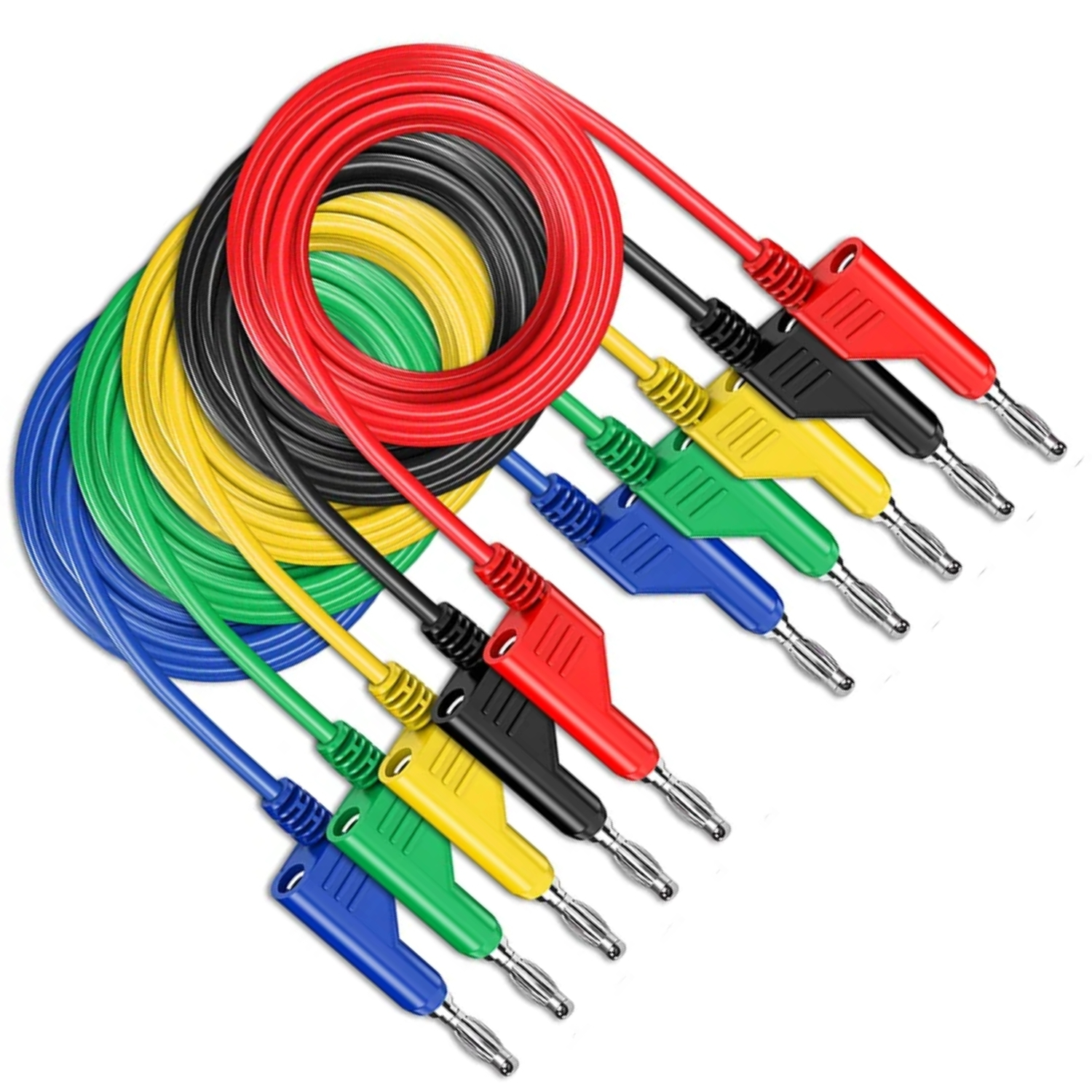 • 5 x cabos de teste com plugue banana (1 peça de cada cor: Vermelho, Preto, Amarelo, Verde, Azul)